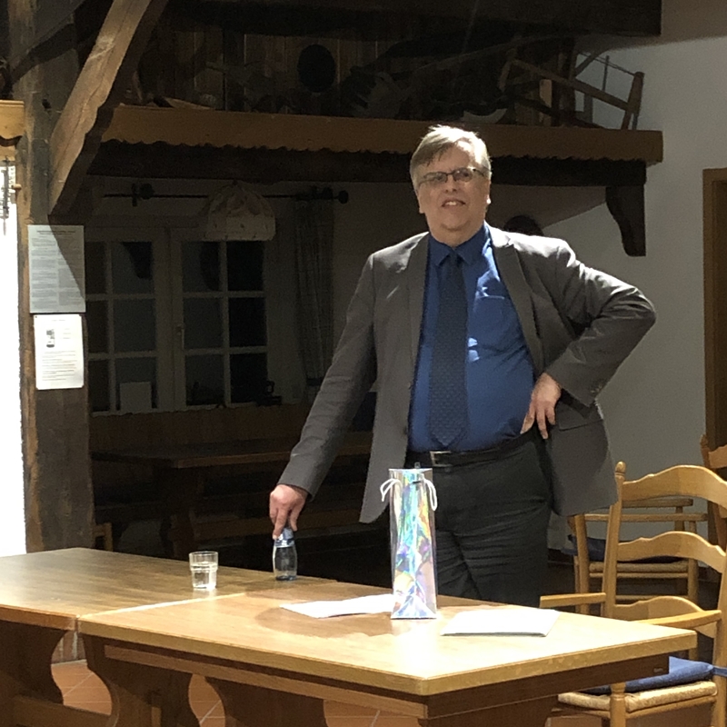 06.10.2023 - Der Herr Pastor war da! Dr. Tim Unger ist seit langen Jahren unser Pastor in Wiefelstede. Er ist aber auch Kirchenhistoriker und weiß allerhand geschichtliches von unserer St.-Johannes-Kirche zu erzählen. Er weiß aber noch mehr und kennt auch so manche Geschichte rund um unsere Kirche und aus dem Dorfgeschehen vergangener Tage. Mit Geschichtlichem und Geschichten hat er im Oktober die Wiefelsteder begeistert. Bis auf den letzten Stuhl war der Hof gefüllt und all diejenigen, die da waren, gingen sehr zufrieden nach Hause. Was für ein gelungener Abend und sicherlich laden wir Dr. Unger noch einmal gerne zu uns ein.