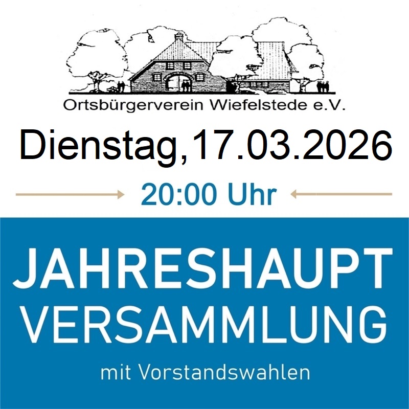 Einladung zur Jahreshauptversammlung am 17. März 2026, um 20 Uhr im Hof Kleiberg, Kleiberg 10, Wiefelstede